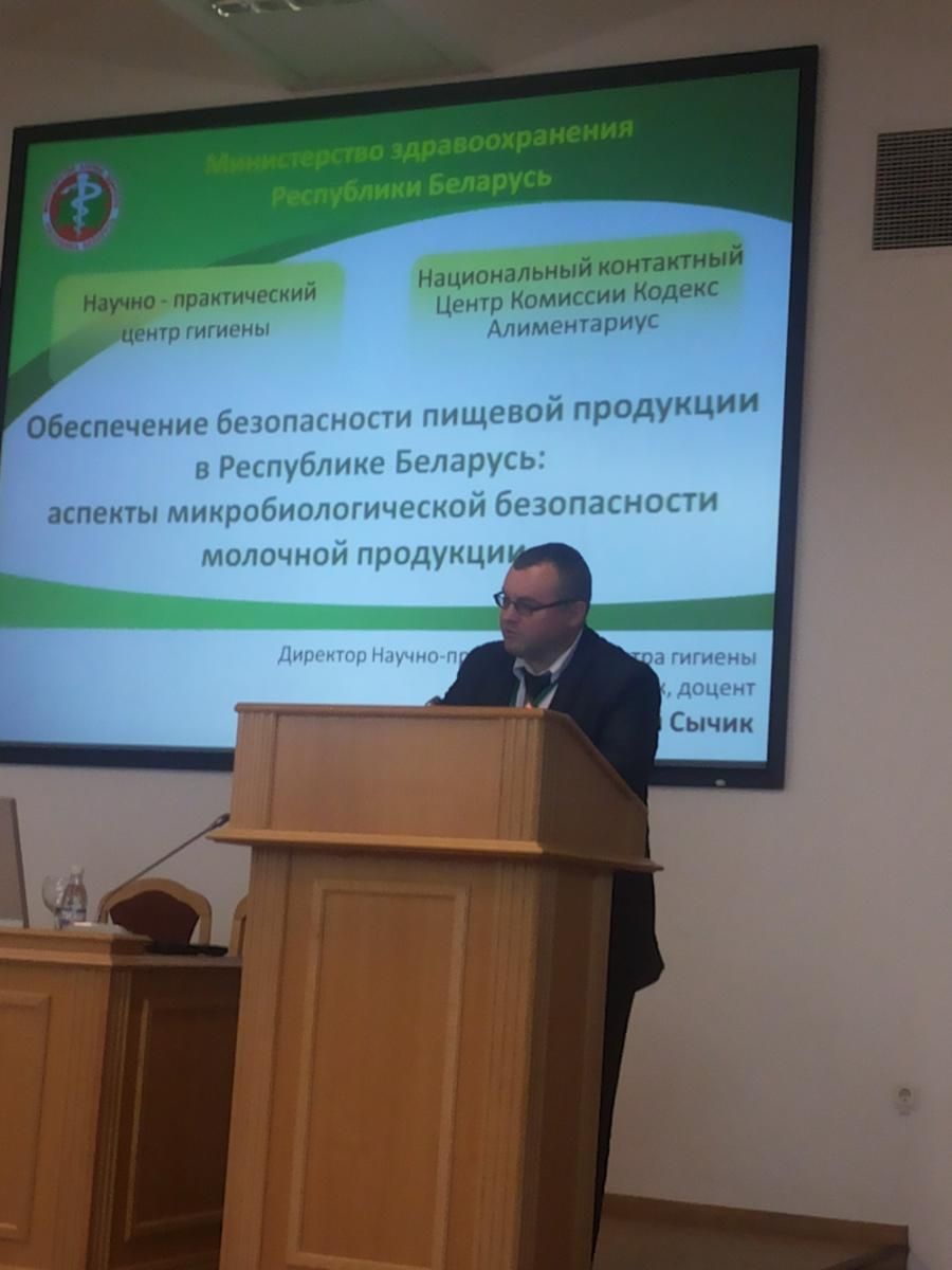 Директор Центра С.И.Сычик выступил с докладом «Обеспечение безопасности пищевой продукции в Республике Беларусь: аспекты микробиологической безопасности молочной продукции».
