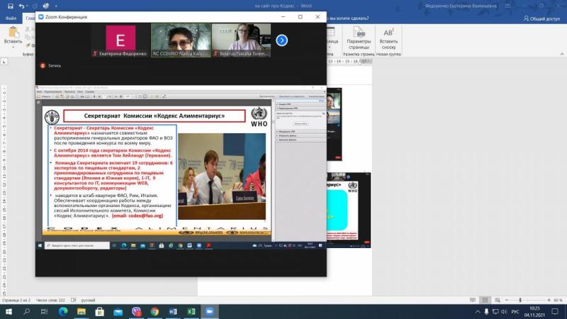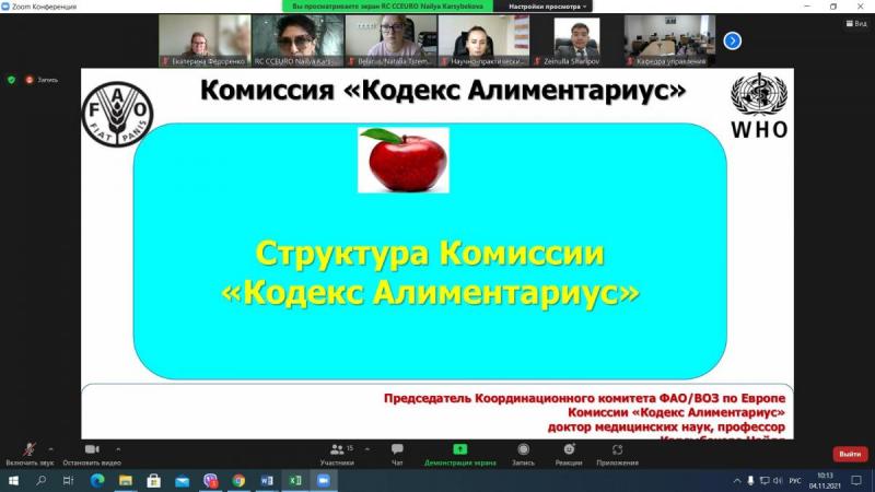 Первый тренинг «Обзор институциональной структуры Кодекс Алиментариус» проволится 4 и 5 ноября 2021 г. В рамках данного образовательного курса планируется рассмотреть институциональную структуру Кодекса, онлайн-инструменты и процедуры, используемые Секретариатом Кодекса. Своим опытом поделятся коллеги из Казахстанского национального контактного пункта Комиссии Кодекс Алиментариус.