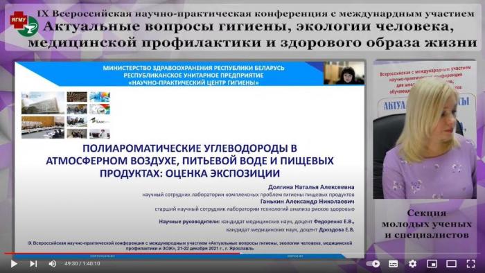 С 21 по 22 декабря 2021 г. в г. Ярославль (Российская Федерация) в онлайн-формате на базе Федерального государственного бюджетного образовательного учреждения высшего образования «Ярославский государственный медицинский университет» состоялась IX Всероссийская научно-практическая конференция с международным участием «Актуальные вопросы гигиены, экологии человека, медицинской профилактики и ЗОЖ». В мероприятии приняли участие более 220 школьников, обучающихся СПО, студентов, молодых ученых и специалистов из Российской Федерации и Республики Беларусь.