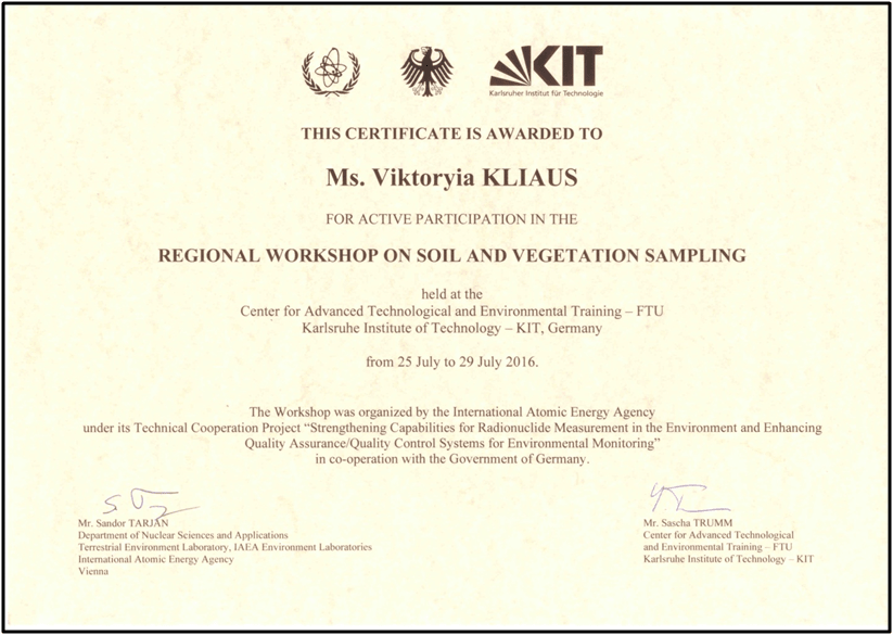 25-29 июля 2016 года в Технологическом институте Карлсруе (KIT), Германия, прошел Региональный семинар Международного агентства по атомной энергии (МАГАТЭ) по радиационному мониторингу почвы и объектов растительного мира.
